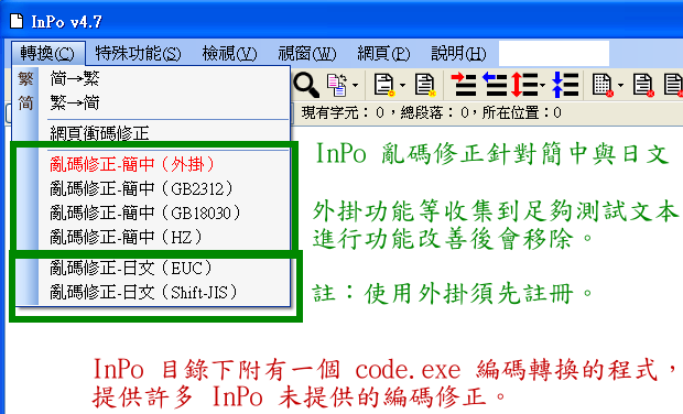 亂碼修正 【注意】當修正失敗(無還原可辨識文字),欲進行第二次修正, 需先還原為「未進行修正過的文字」,才再進行第二次修正。